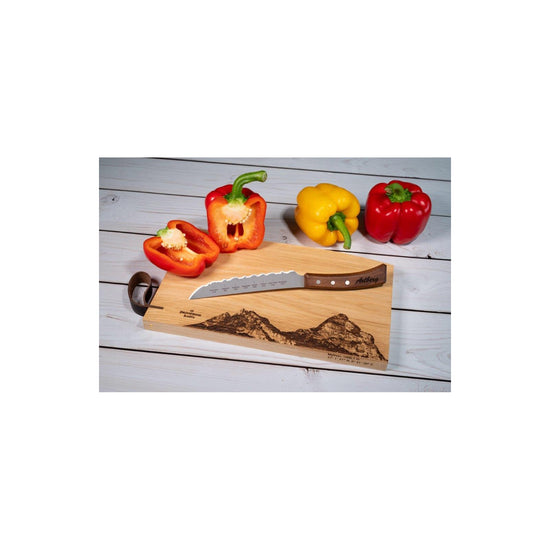 Die Klinge ist aus Rockwell-Stahl, Härte C. Der fast samtene Griff ist aus Nussbaumholz. Ein handgemachtes Messer - bitte von Hand abwaschen.