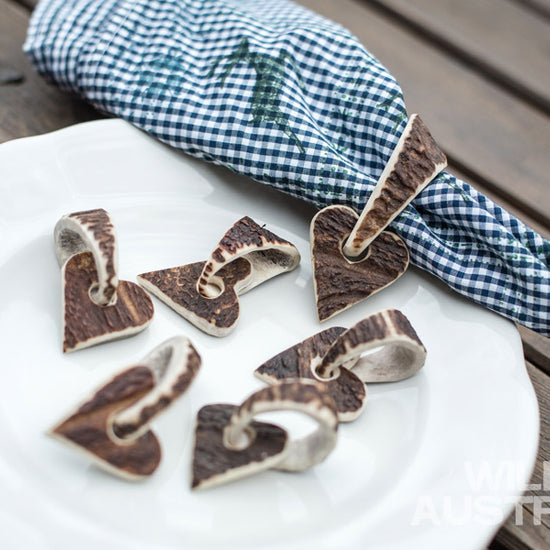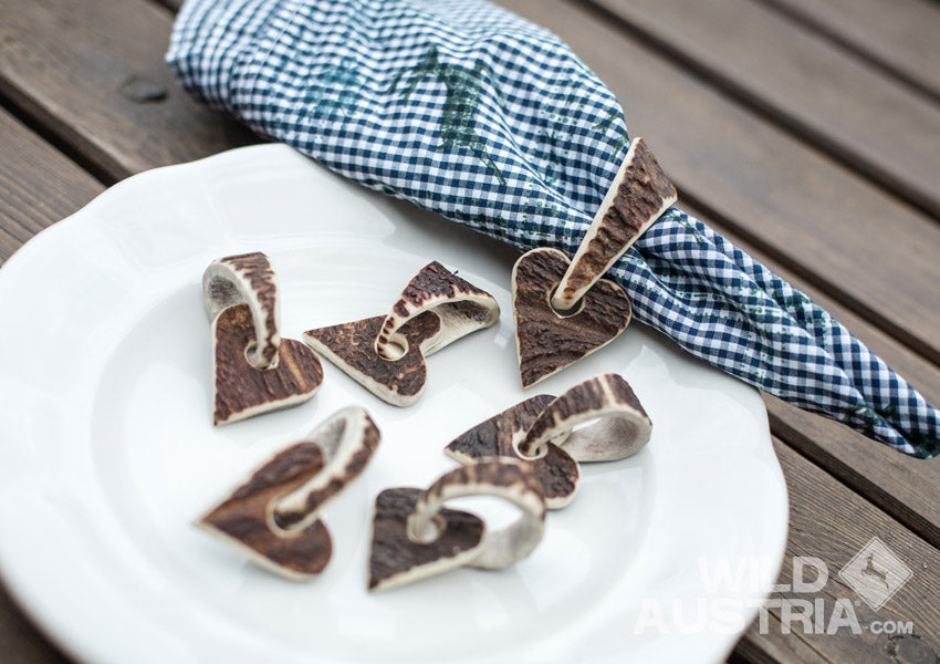 - 6 Stk. handgeschnitzte Herzen aus echtem Hirschhorn