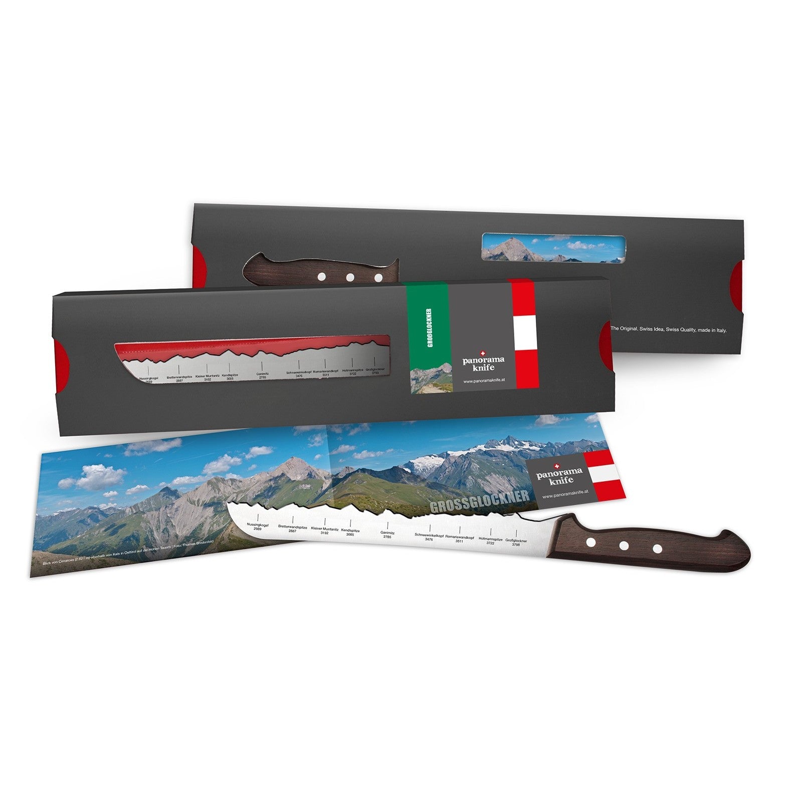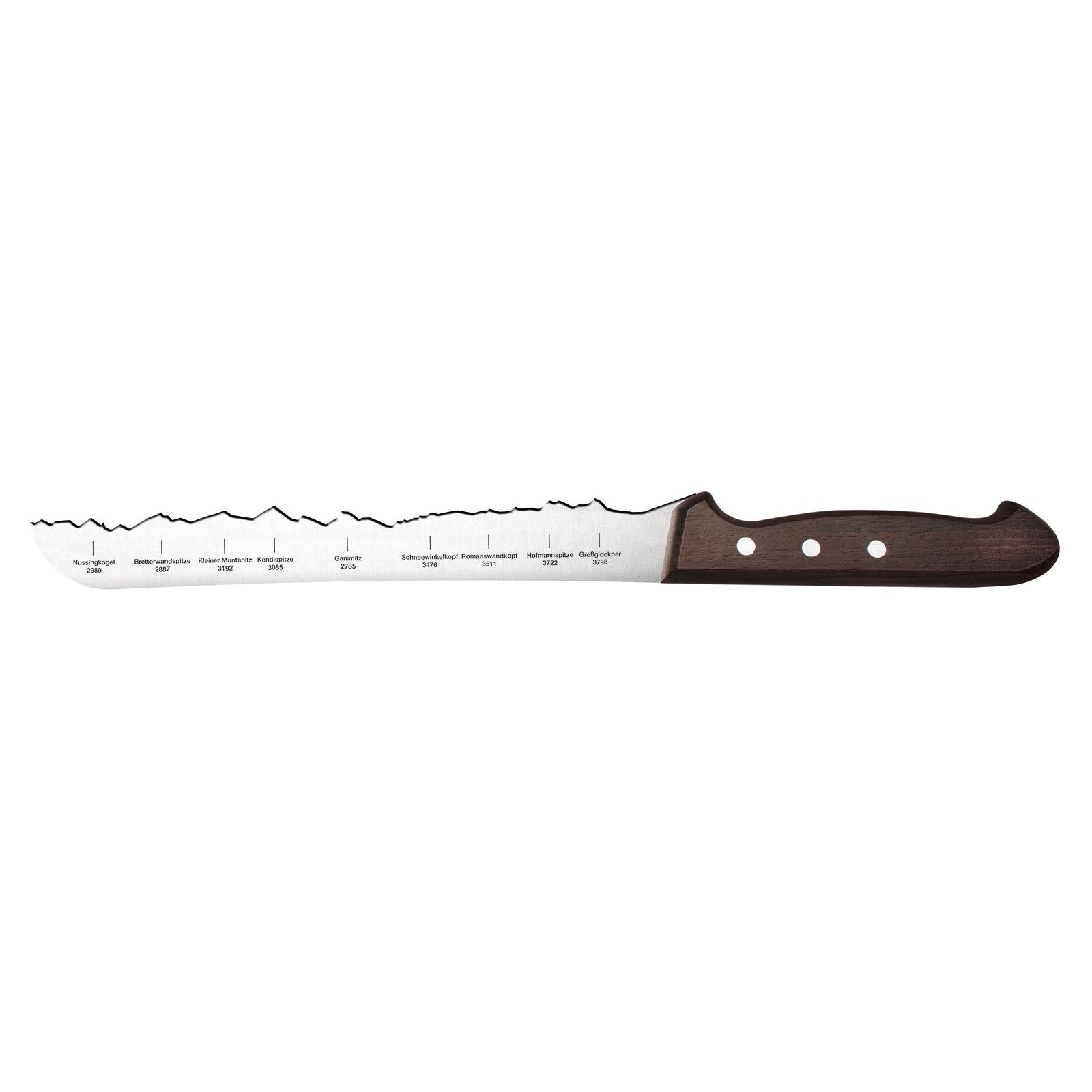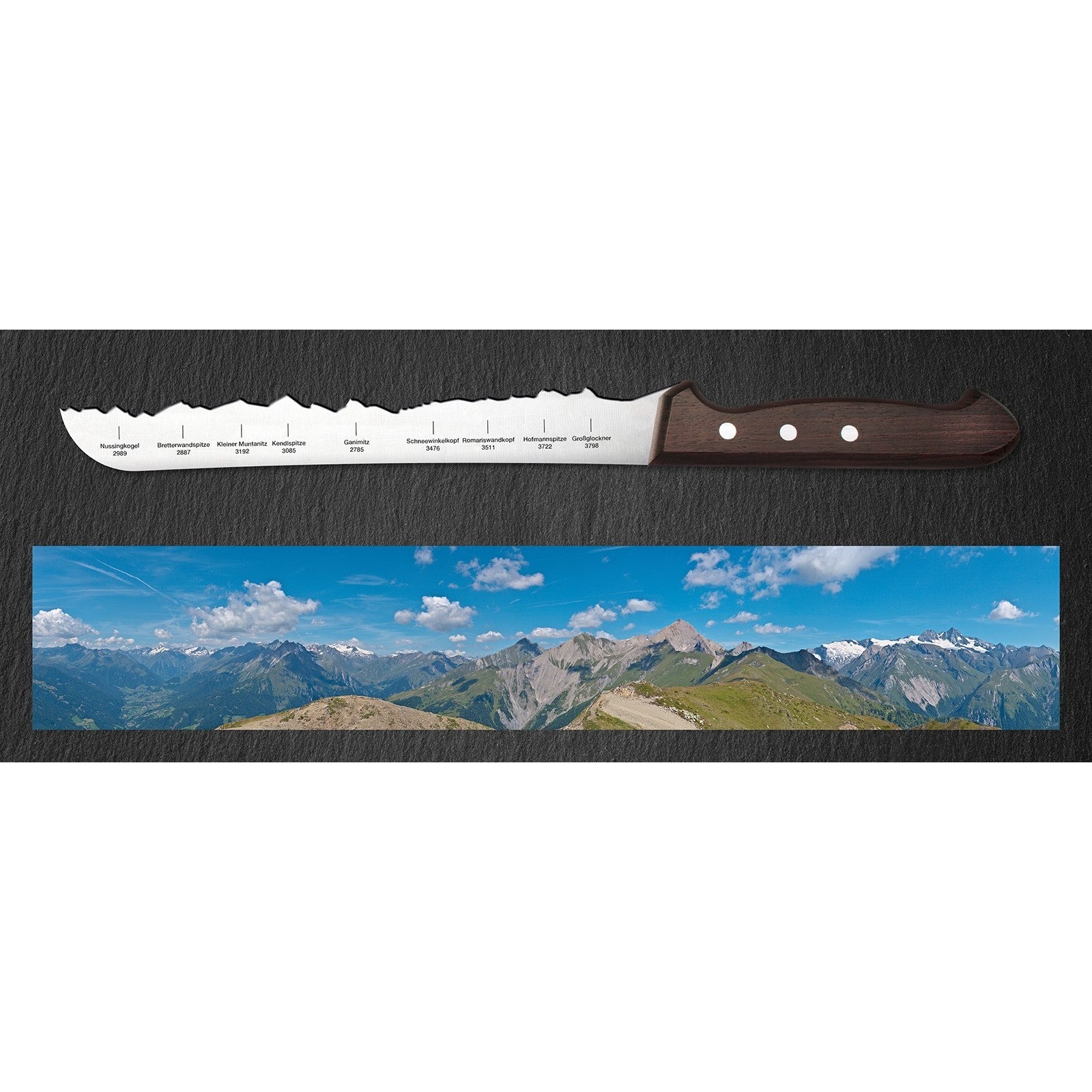 Ein herrliches österreichisches Alpenpanorama auf unserem scharfen Brotmesser.